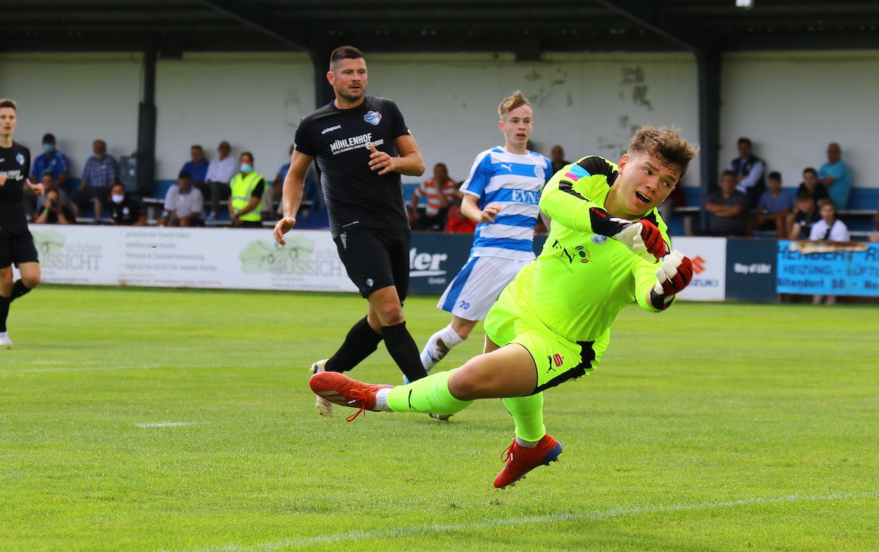Torhüter Valentin Henning konnte dem Schuss von Tobias Billeb nur hinterherschauen (0:1) (Foto: B.Peter)