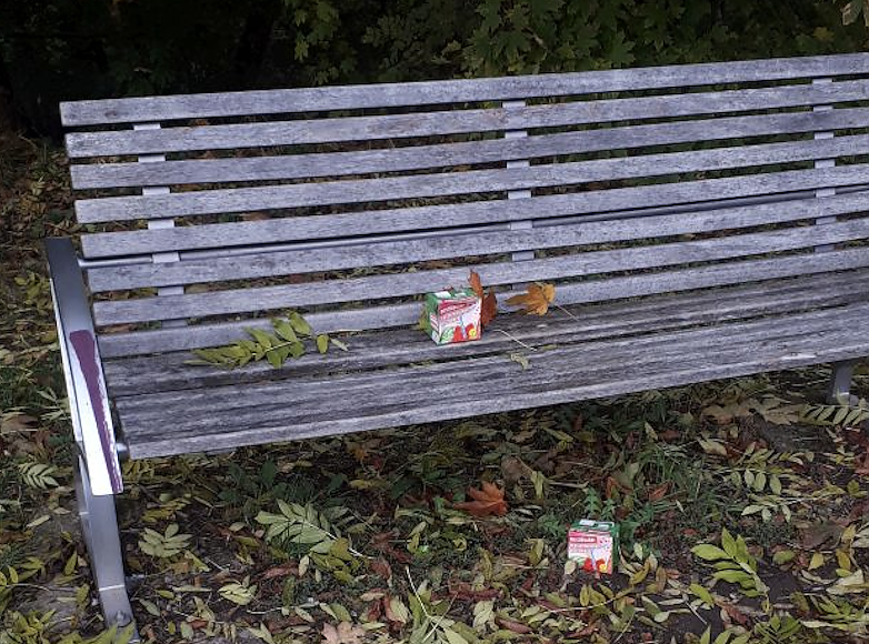 Anders sieht es ein paar Meter im Verlauf der Kyffhäuserstr. aus. Dort gibt es einer Bank und überhaupt keine Papierkörbe.