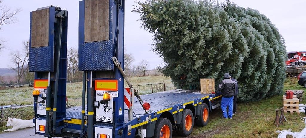 Heute wird die etwa 40-jährige Coloradotanne in Breitenworbis gefällt und mit dem Schwerlastkran auf einen Tieflader gebracht. Dabei achten die Fällexperten darauf, dass keinerlei Äste brechen oder gar die Krone beschädigt wird. Transportfähig gesichert wird der Vorzeigebaum am morgigen Sonntag nach Berlin speditiert.