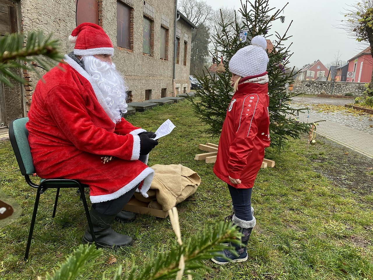 Heute schmückten die Mädchen und Jungen der G-Junioren von der Spielergemeinschaft Harztor ihren Baum. Die Kinder im Alter zwischen 4 und 6 Jahren haben den Baumschmuck selbst gebastelt, freut sich Heiko Hieronymus von der SG Harztor über den Erfolg der Aktion. Und weil sie mit so viel Fleiß und Freude daran teilgenommen haben, kam auch der Weihnachtsmann am Vormittag auf den Kirchhof und überreichte Geschenke. Der Weihnachtswald auf dem Niedersachswerfer Kirchhof kann noch bis zum 6. Januar besichtigt werden.