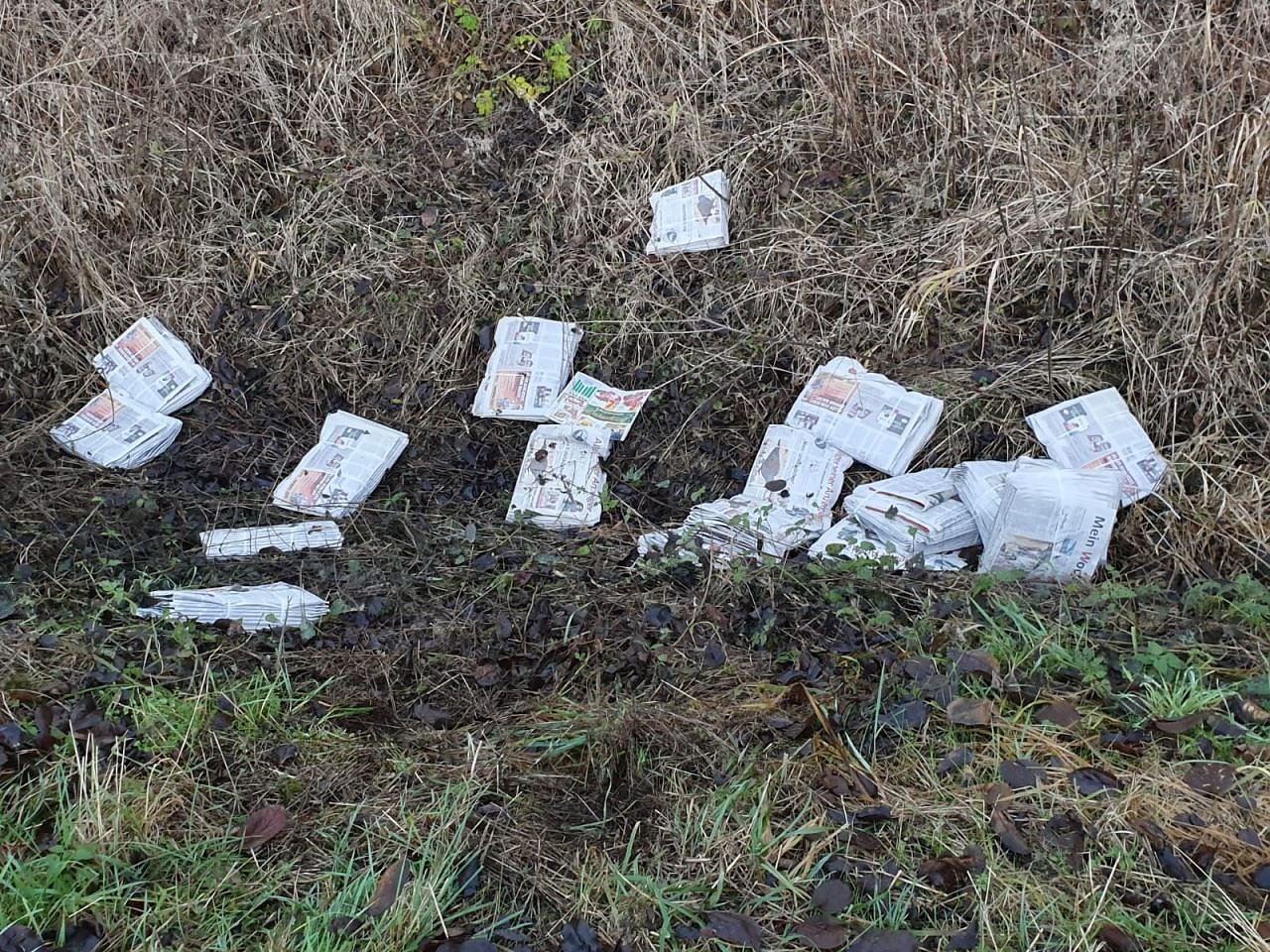 Anscheinend handelt es sich um ganze Bündel einer Wochenzeitung. "Schon seltsam und vor allem schäbig, dass diese Massen nicht an den richtigen Ort gelandet sind. Da können ja nicht viele Personen infrage kommen, welche solche Mengen zur Hand haben", schreibt der Macher des Fotos.