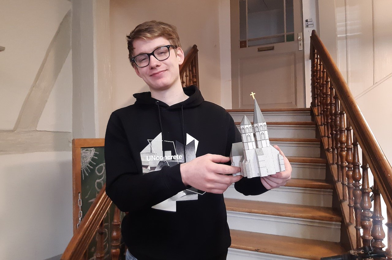 Insgesamt 5 Stunden konzentrierter Arbeit hat Gemeindepädagoge Frank Tuschy damit zugebracht, seine geliebte Blasii Kirche als Miniatur Modell zu basteln. Etwas schneller und vor allem einfacher ginge es die Schulversion zu bauen...