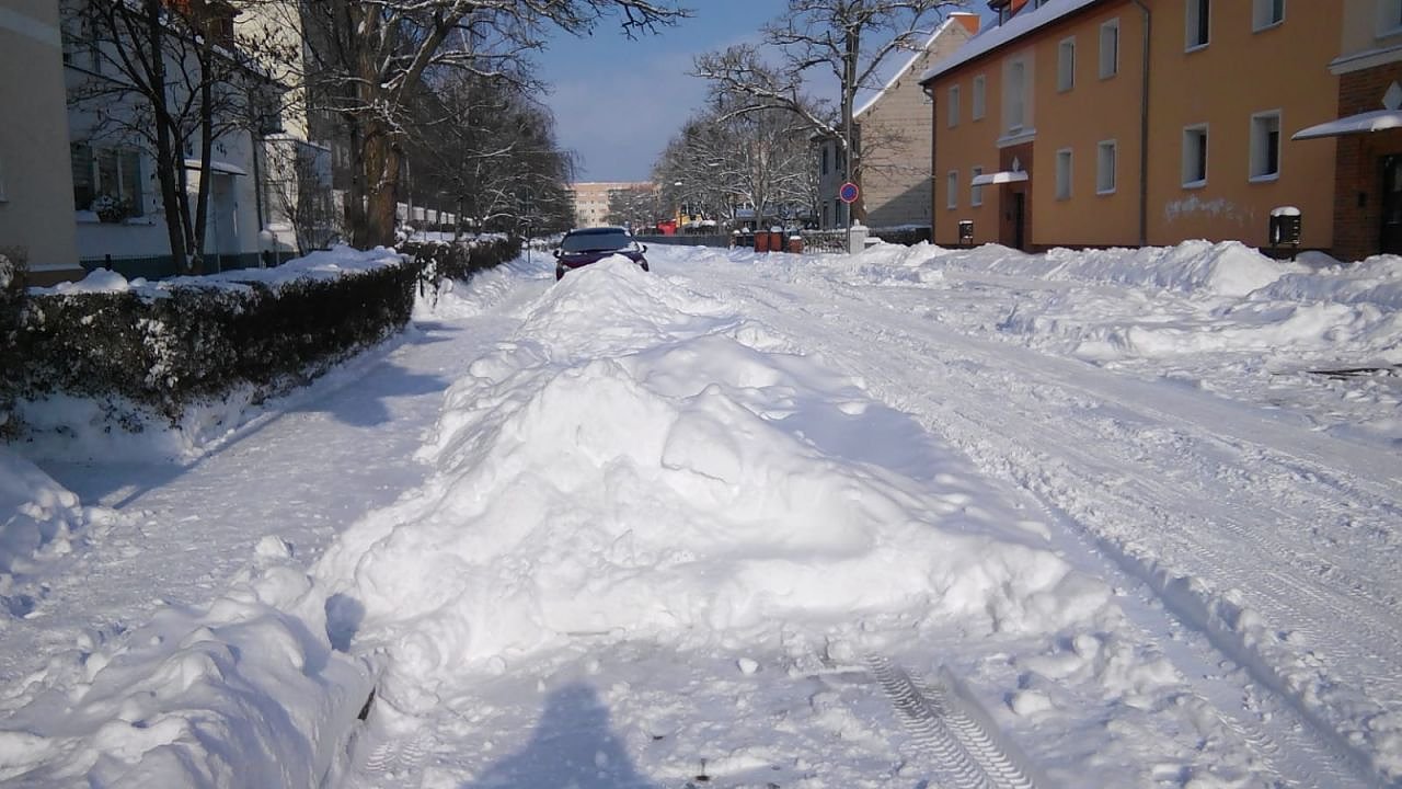 Sollte allerdings der Schneeflug einmal die Hardenbergstraße oder andere Nebenstraßen passieren, wäre wohl jede Parkmöglichkeit dahin und die mühevoll beräumten Gehwege erneut dicht. Mittlerweile wird die Straße immer enger, die Spurrillen indes ausgeprägter. Wohin aber mit den weißen Bergen? Vor dieser Frage stand die Stadtverwaltung schon einmal: im schneereichen Kältewinter 1962/63.