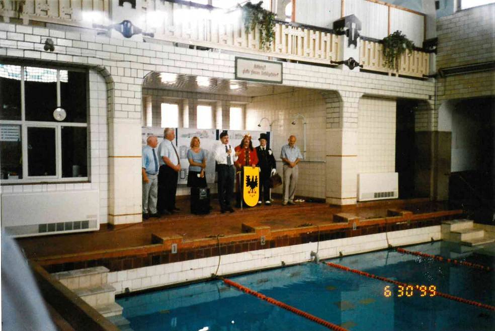 Die digitale Fototechnik steckte noch in den Kinderschuhen, aber die Rolandgruppe stand schon am Beckenrand (Foto: Archiv Badehaus Nordhausen)