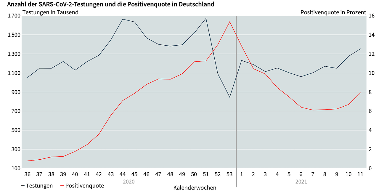 In Deutschland sind bisher 2 667 225 Menschen bestätigt positiv getestet worden, was etwa 3,5 Prozent der Bevölkerung entspricht. Der 14-Tage-Inzidenzwert zwischen Kiel und Zugspitze liegt aktuell bei 194,8, die 14-tägige Mortalitätsrate bei 33,4. Verstorben sind in Deutschland seit letztem März bis jetzt 74 714 Menschen, die etwas weniger als 0,1 Prozent der Gesamtbevölkerung ausmachten.