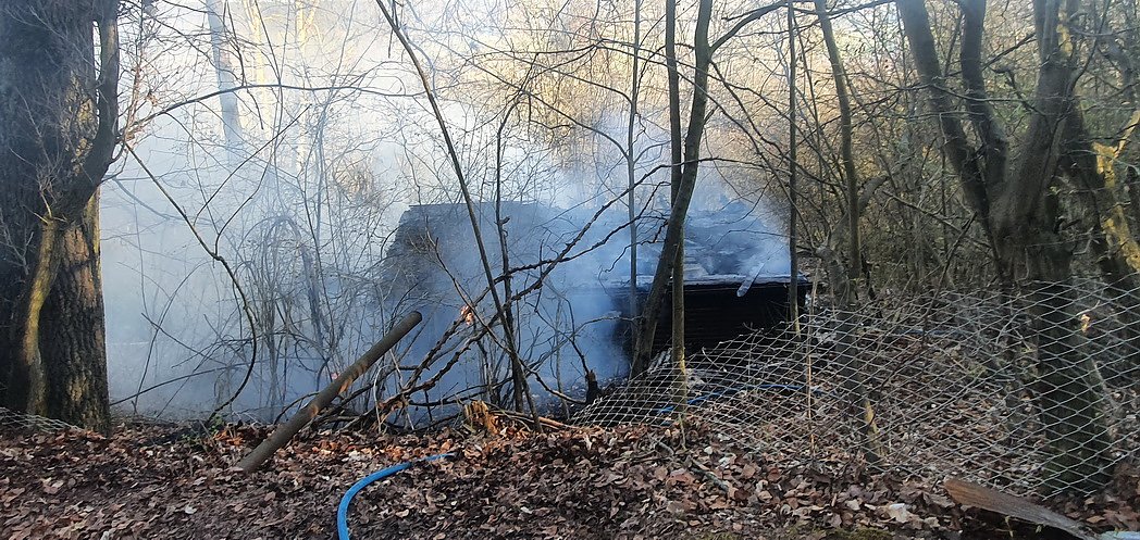 Hier stand eine leerstehende und unbewohnte Gartenlaube in Vollbrand. Durch das schnelle Eingreifen der Einsatzkräfte konnte das übergreifen des Feuers auf ein angrenzendes Waldstück verhindert werden.