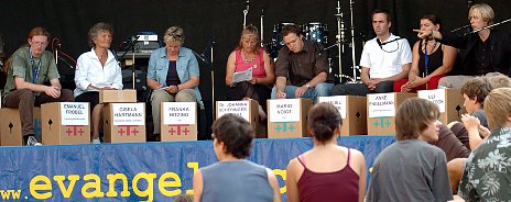 An der Podiumsdiskussion mit Vertretern aller Parteien scheint das Interesse der jungen Leute nicht zu groß zu sein. Andere Angebote auf dem Burggelände locken mehr. Ungünstig ist auch, daß die größten Teile der Kirchenprovinz Sachsen in Sachsen-Anhalt liegen. Die Kandidaten werben aber um Stimmen der Thüringer. Nachdem Uli Wittstock, der Moderator vom MDR, mit Verspätung eintraf, durften sich die Teilnehmer kurz vorstellen und den Jugendlichen sagen, warum es sich lohnt, die eigene Partei zu wählen.