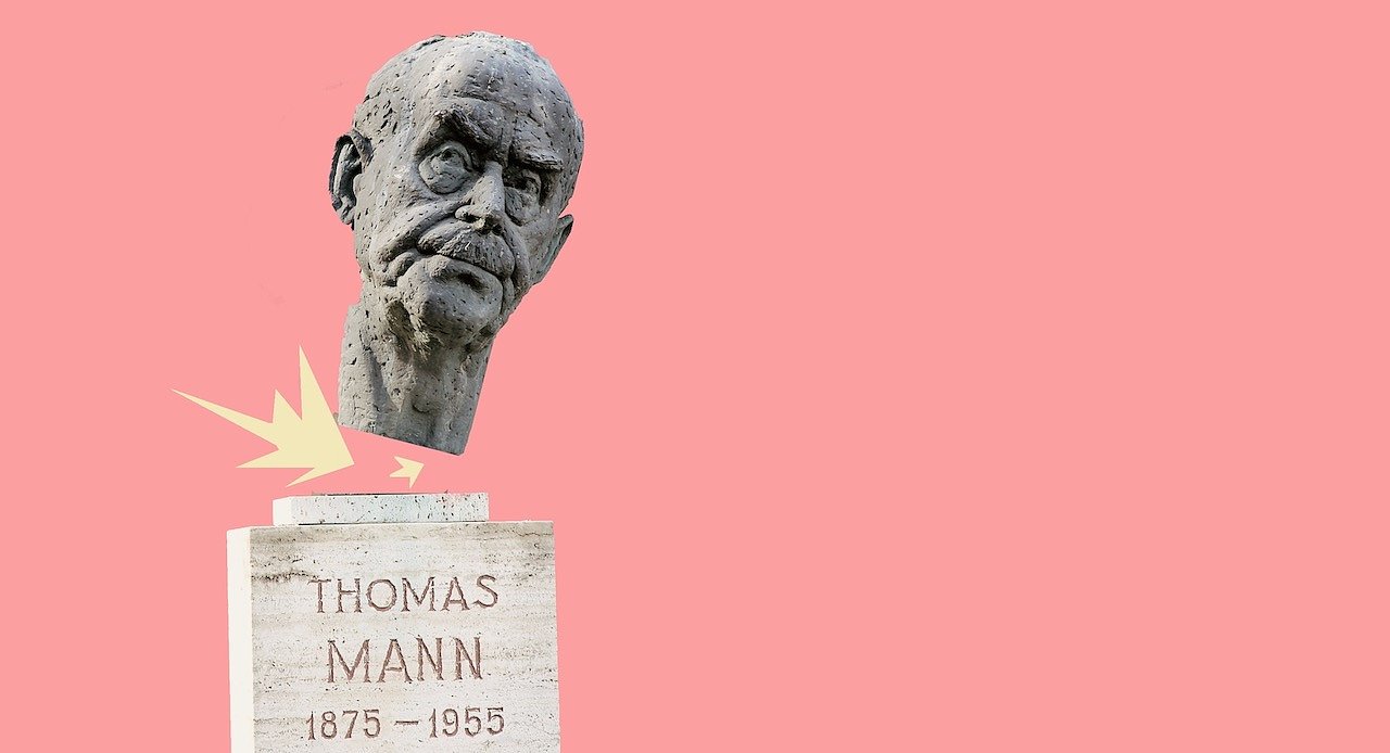 Jahrzehntelang schmückte den Garten des zuletzt heiß umstrittenen Gebäudes in der Wilhelm-Nebelung-Straße die Büste des namensgebenden hochgerühmten Dichters, der in der Weltliteratur wahrlich große Fußabdrücke hinterließ. Der eine oder die andere von uns wird sich noch an die Pflichtlektüre von Mario und der Zauberer erinnern, die in weiterführenden Schulen Ausbgebildeten vielleicht auch noch an die Buddenbrooks, einen sehr, sehr langen Roman des Meisters. Gewürdigt wurde er als Ausnahmekünstler des 20. Jahrhunderts in ganz Deutschland und die realsozialistische Führung beanspruchte ihn ebenso für sich wie die marktsoziale im anderen Teil Deutschlands.