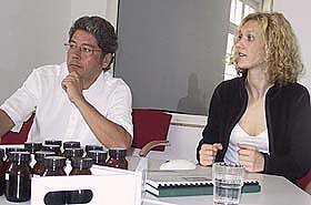 Heute jedenfalls wurden im Rahmen der Diplomarbeit einer Absolventin der FHN die Ergebnisse eines Kooperationsprojektes zwischen Fachhochschule und Nordbrand vorgestellt und erläutert. Deutlich wurde dabei, dass die Akzeptanz eines Getränkes – in diesem Falle eines Kräuterlikörs – oder auch einer Speise durch den Konsumenten nicht nur von seiner geschmacklichen Wahrnehmung, sondern auch vom Geruch her abhängig ist. Das Ziel dieses ersten Kooperationsprojektes zwischen der Nordbrand Nordhausen GmbH, (vertreten durch Dr. Jürgen Hornemann) und dem ausführenden Team des Sensoriklabors der FHN, bestehend aus Prof. Dr. Andreas Scharf und der Diplomkauffrau Stephanie Glassl, bestand in der objektiven Erfassung des Geruchs von acht Kräuterlikör-Marken durch Konsumenten.