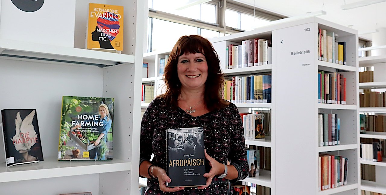 Bibliotheksmitarbeiterin Andrea Wilke präsentiert Neuerscheinungen. (Foto: ©Stadtverwaltung Nordhausen)