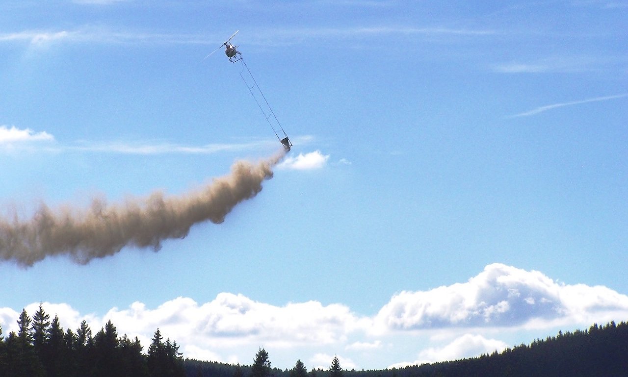 Per Hubschrauber werden Anfang September 920 Hektar Staatswald in den Hochlagen des Thüringer Waldes mit Naturkalk behandelt. Säurealtlasten sinken nur langsam, deshalb werden wird in den Revieren Oehrenstock und Kickelhahn (Forstamt Frauenwald) bei geeignetes Flugwetter gekalkt...