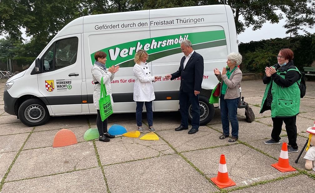 Dieses Jahr war es an der Zeit, den zehn Jahre alten Bus gegen einen neuen auszutauschen, wofür sich Projektleiter Dieter Köhler nach Erfurt begab. Staatssekretärin im Thüringer Ministerium für Infrastruktur und Landwirtschaft, Susanna Karawanskij, überreichte feierlich die Schlüssel des neuen Verkehrsmobils, das vom Ministerium bereitgestellt wird.