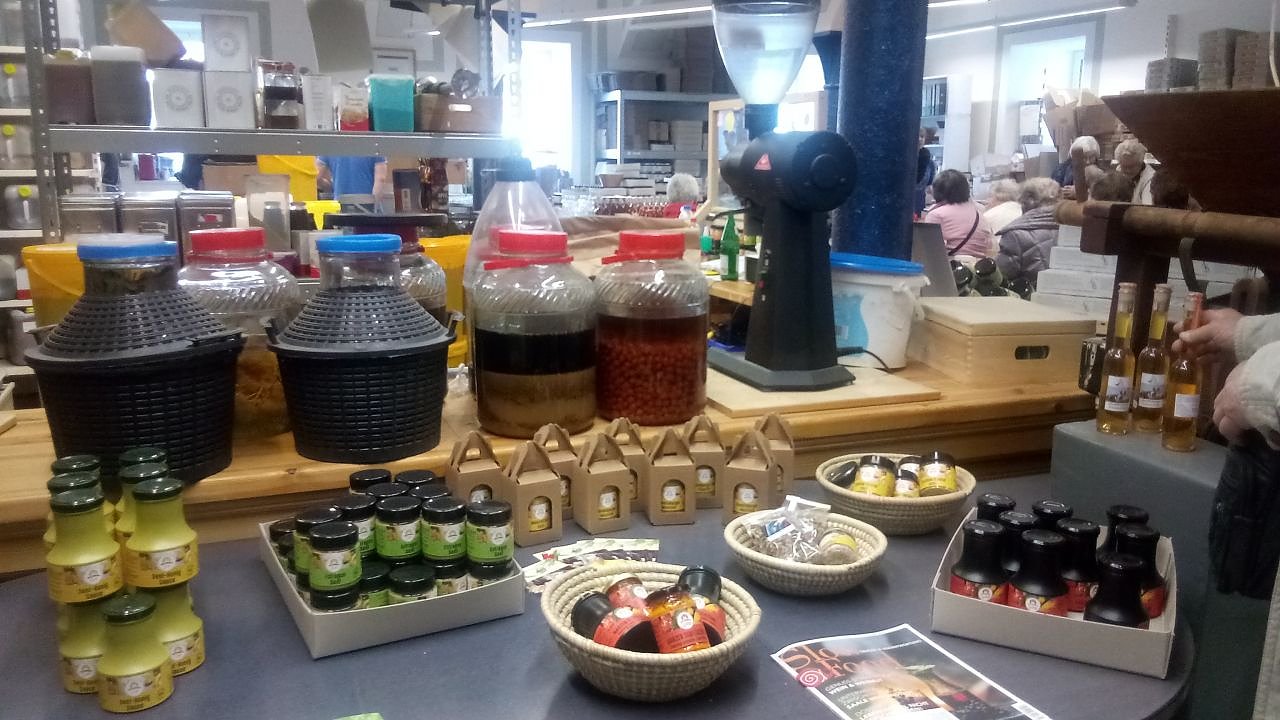 Probieren sie mal die gelben Körner, meinte die gesprächige Kollegin. Neugierig nahmen sie die Anwesenden in den Mund. Nichts. Zerbeißen sie die Körner, riet die Manufaktur-Frau. Jetzt entfaltete das Gewürz seine volle Kraft. Dann die schwarzen Kügelchen. Sie entfalten ihre Schärfe langsam, die aber hält sich über lange Zeit.