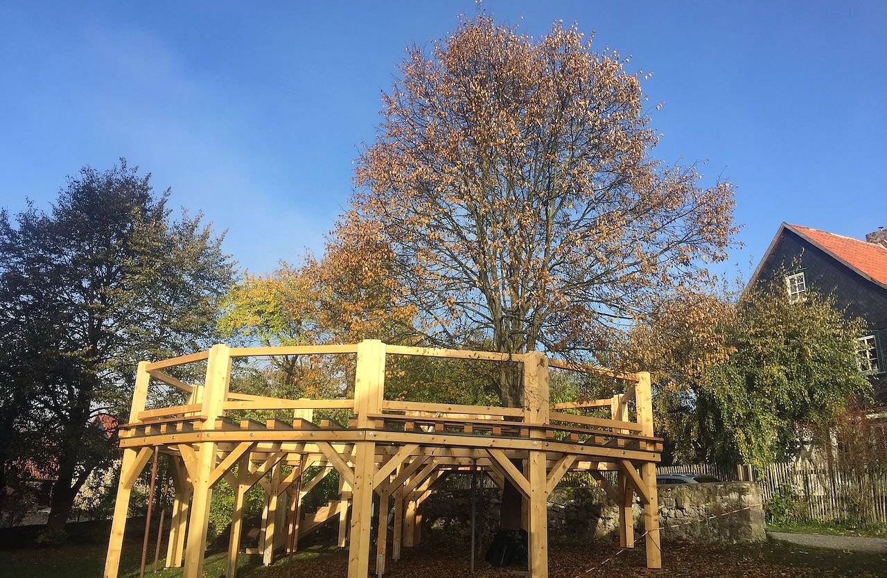 Die Einweihung wird zwar auf 2022 verschoben, aber hochsteigen, kann man ja bereits. Nun haben sie in Liebenrode also eine Tanzlinde. Was ist das eigentlich? Zunächst einfach nur eine Linde mit einem hohen begehbaren Podest. Oder auch ein gemeinschaftsstiftendes Kultur- und Naturdenkmal. Die auserwählte Linde ist 20 Jahre alt. Ihre Krone wird sich über der Tanzfläche entwickeln. Vor Trockenheit schützt sie ein neues zusätzliches Wasserreservoire. Im Sommer kann man dann zwischen Blättern und Blüten tanzen, Geschichten hören, den ersten Kuss bekommen, Theater spielen, heiraten oder einfach auszuruhen und die Natur entdecken - ein generationenübergreifender Treffpunkt ist da entstanden. Darüber freut sich nicht nur die Kirchengemeinde.