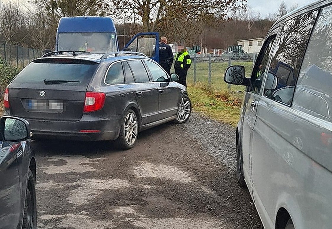 Kurz nach 13:00 Uhr beobachtete ein Mitarbeiter der Baufirma, der gerade vom Einkaufen kam, dass sich auf dem Gelände einer dort ansässigen Firma drei Personen auffällig bewegten. Deren Interesse galt offensichtlich Baumaschinen, die sich auf dort abgestellten Lkw befanden.