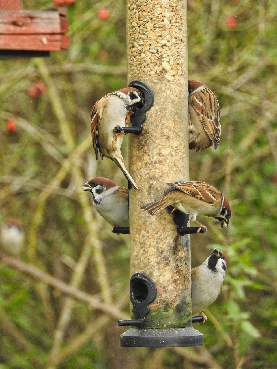 Als Futterspender eigenen sich besonders gut Futtersilos. Das Futter ist in ihnen weitestgehend vor Nässe, Witterungseinflüssen und Verunreinigung wie Vogelkot geschützt. Entscheidet man sich für ein offenes Vogelhäuschen, ist es wichtig dieses regelmäßig mit heißem Wasser zu reinigen.