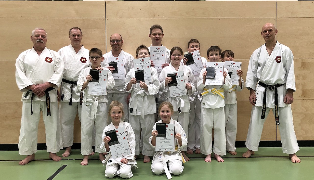 Dies waren aber nur die Grundvorrausetzungen für die Mitglieder, die sich in den verschiedenen Übungsgruppen mit Fleiß weiterentwickelten und nun im Dezember zu den Prüfungen zugelassen wurden. Dabei konnten im Karate in Nordhausen fünfmal der weiß-gelbe, fünfmal der gelbe, einmal der grüne und sogar viermal der braune Gürtel bestanden werden. In Kelbra hingegen waren es siebenmal der weiß-gelbe und dreimal der gelbe Gürtel.