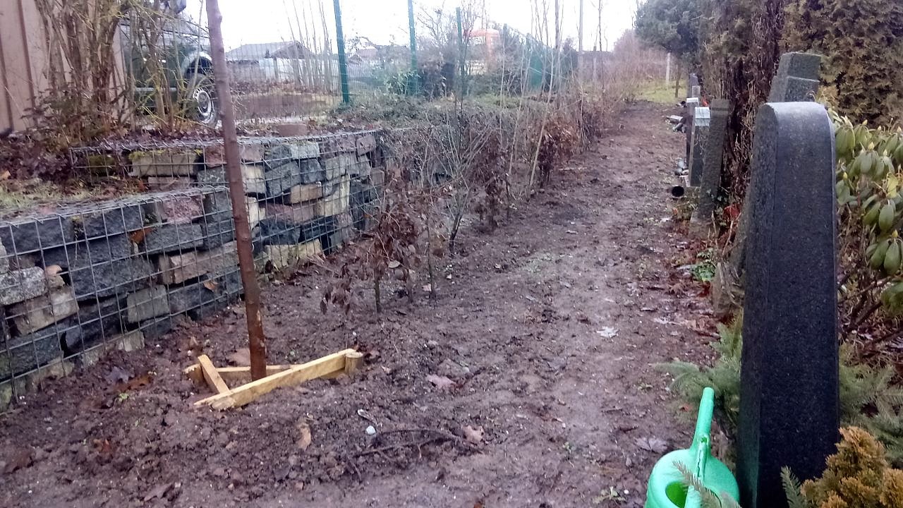 Verwundert war ich allerdings, als man eine schon ansehnliche grüne Lebensbaum-Hecke rodete. In ihr konnten Vögel brüten, zudem bot sie guten Schutz gegen Westwindwetterlagen und verwehrte den Blick auf den Lagerplatz des Gottesackers. Wir werden die freie Fläche noch in diesem Jahr wieder begrünen, meinte Friedhofschefin Lange auf Anfrage. Sie hielt Wort. Jetzt zieren vor allem allerlei Gehölze die kahl gewordene Stelle. Auch Beerensträucher sollen darunter sein. Als Vogelfutter.