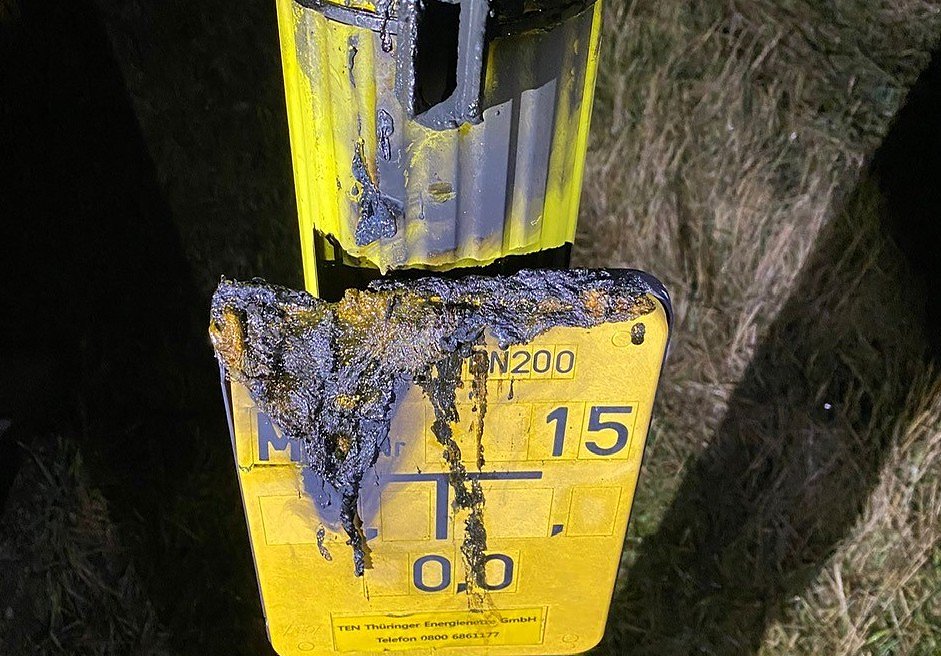 Autor: redAls die Polizisten am Brandort eintrafen, hatten die Kameraden der Feuerwehr das Feuer bereits gelöscht. Das Schild informierte über eine Gasleitung. Hinweise auf einen Täter gibt es bislang nicht.