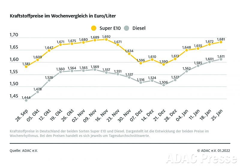 Die Preisrallye an den Zapfsäulen setzt sich fort: Für einen Liter Diesel müssen die Autofahrer in Deutschland derzeit mit einem durchschnittlichen Preis von 1,611 Euro so viel bezahlen wie noch nie. Dies zeigt die aktuelle ADAC Auswertung der Kraftstoffpreise. Im Vergleich zur Vorwoche ist Diesel damit um einen Cent teurer...