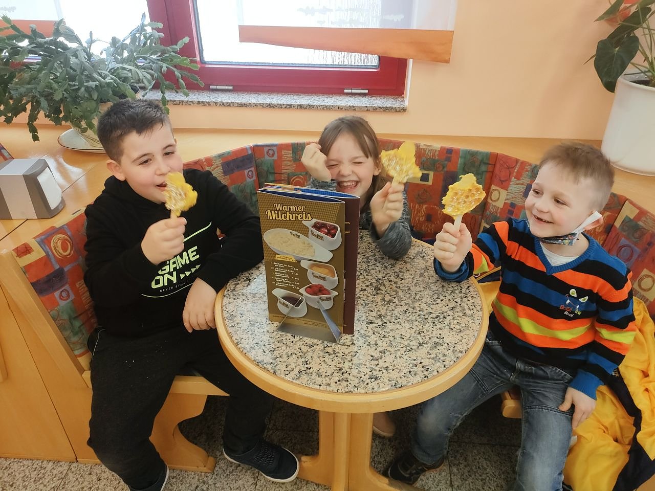 Nach einem ausgiebigen Spaziergang wurden die Kinder im Café herzlich von den Mitarbeitern empfangen und mit einer Bärchenwaffel überrascht.