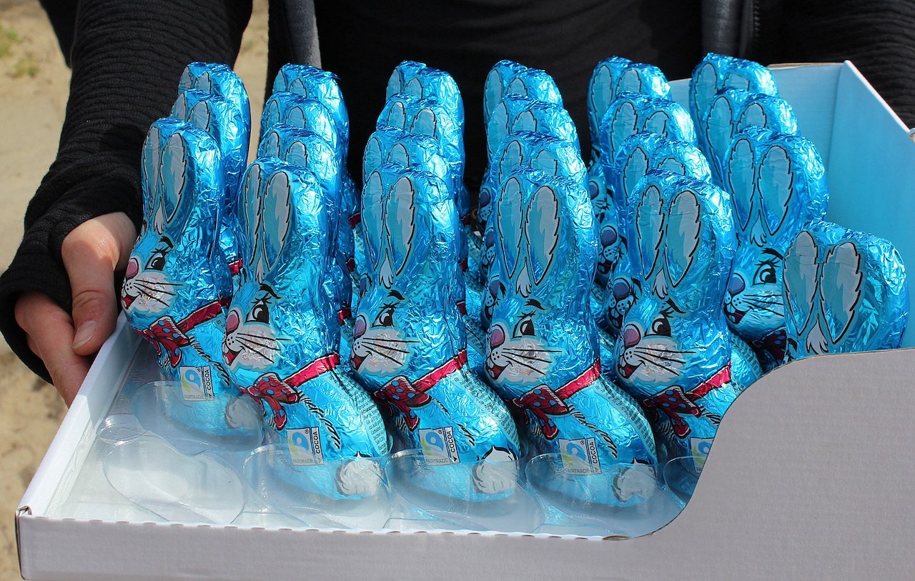 Hier wird noch klassisch gewählt: die Mädchen mit rosa, die Jungs mit blauen Schokohasen (Foto: oas)