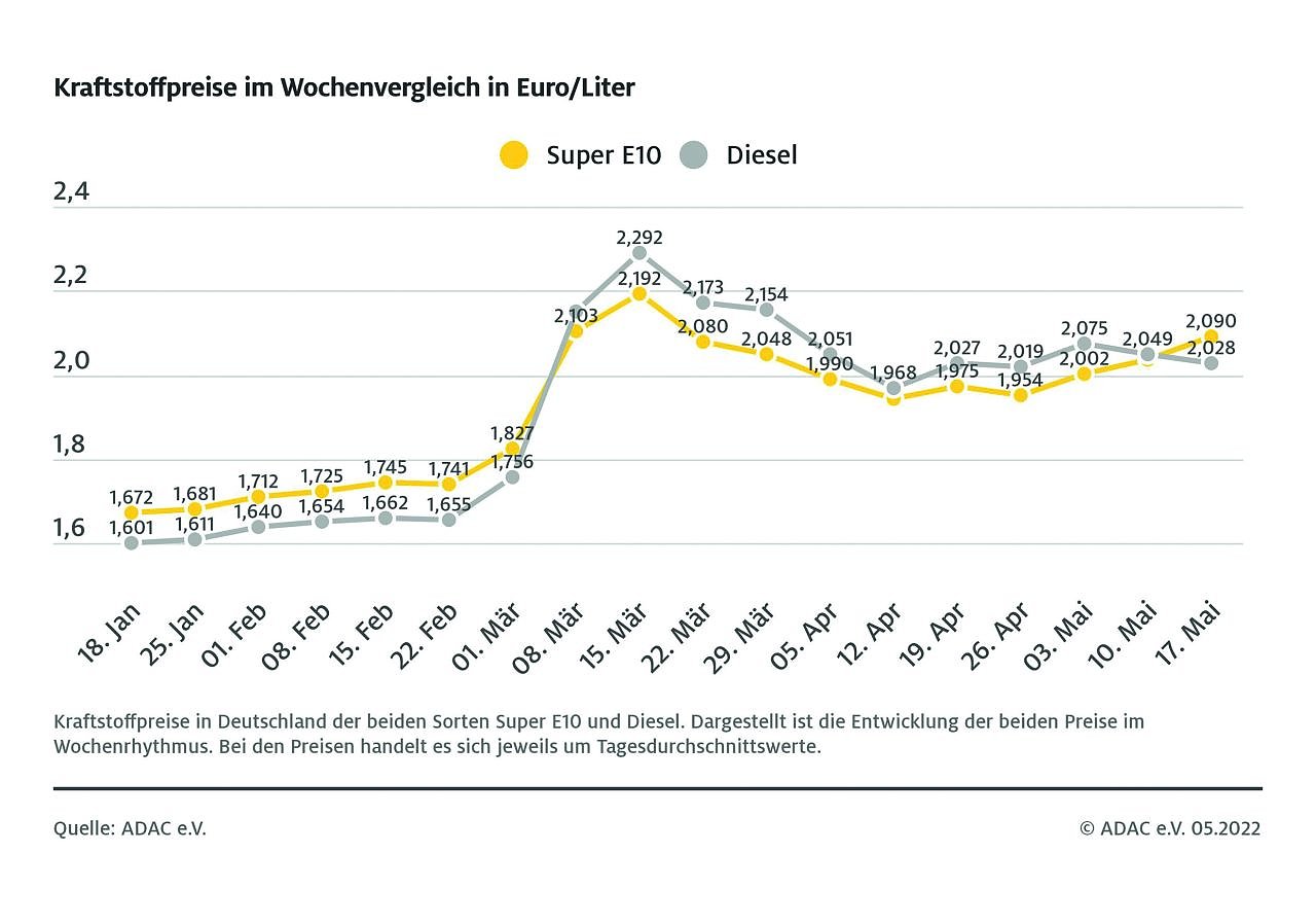 Benzin ist im Vergleich zur Vorwoche deutlich teurer geworden. Wie die aktuelle ADAC Auswertung der Kraftstoffpreise in Deutschland zeigt, kostet ein Liter Super E10 im bundesweiten Mittel derzeit 2,090 Euro. Damit hat sich Benzin binnen einer Woche um 5,4 Cent verteuert...