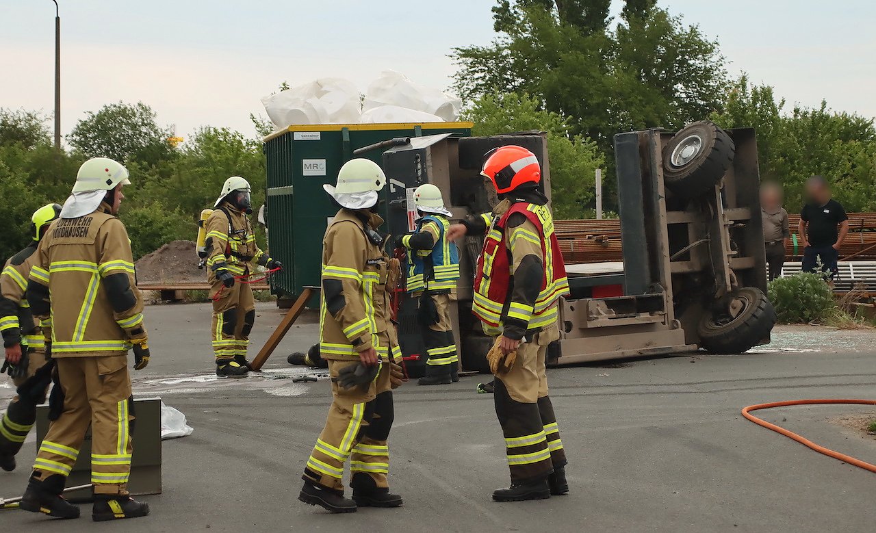 Ein schwerer Arbeitsunfall ereignete sich gestern Abend gegen 19.30 Uhr in einem Nordhäuser Betrieb für Rohrsysteme. Ein 39 jähriger Mitarbeiter befuhr mit einem Stapler das Betriebsgelände, als. aus bisher ungeklärter Ursache das Fahrzeug auf die Seite kippte und den Fahrer unter sich begrub.