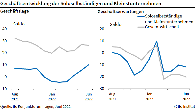 Das Geschäftsklima für Kleinstunternehmen und Soloselbständige hat sich verbessert. Das sind die Ergebnisse des aktuellen Indexes für dieses Segment (Jimdo-ifo- Geschäftsklimaindex). Er stieg im Juni auf minus 1,1 Punkte (nicht saisonbereinigt), nach minus 2,5 im Mai...