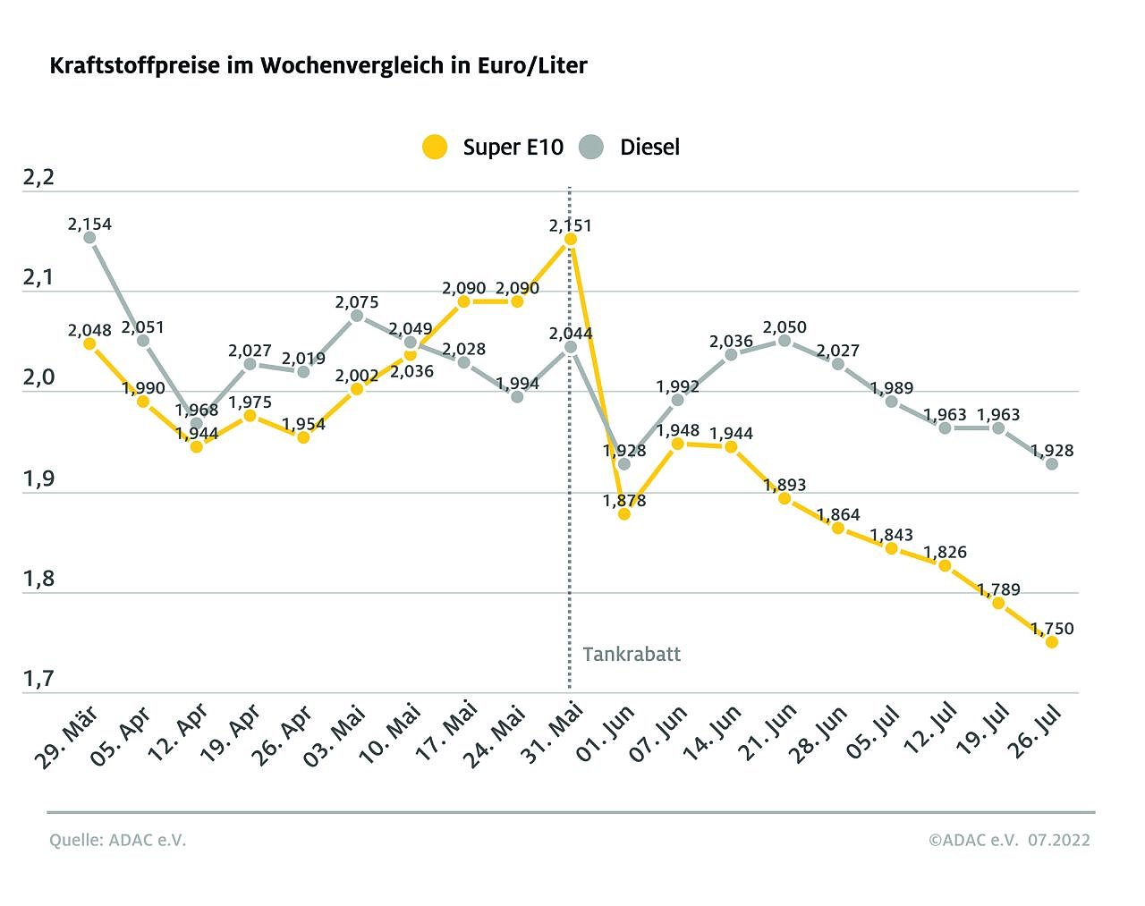 Die Kraftstoffpreise in Deutschland sind deutlich niedriger als in der Vorwoche. Wie die aktuelle ADAC Auswertung der Tankstellenpreise zeigt, kostet ein Liter Super E10 im bundesweiten Mittel derzeit 1,750 Euro und damit 3,9 Cent weniger als vor einer Woche...