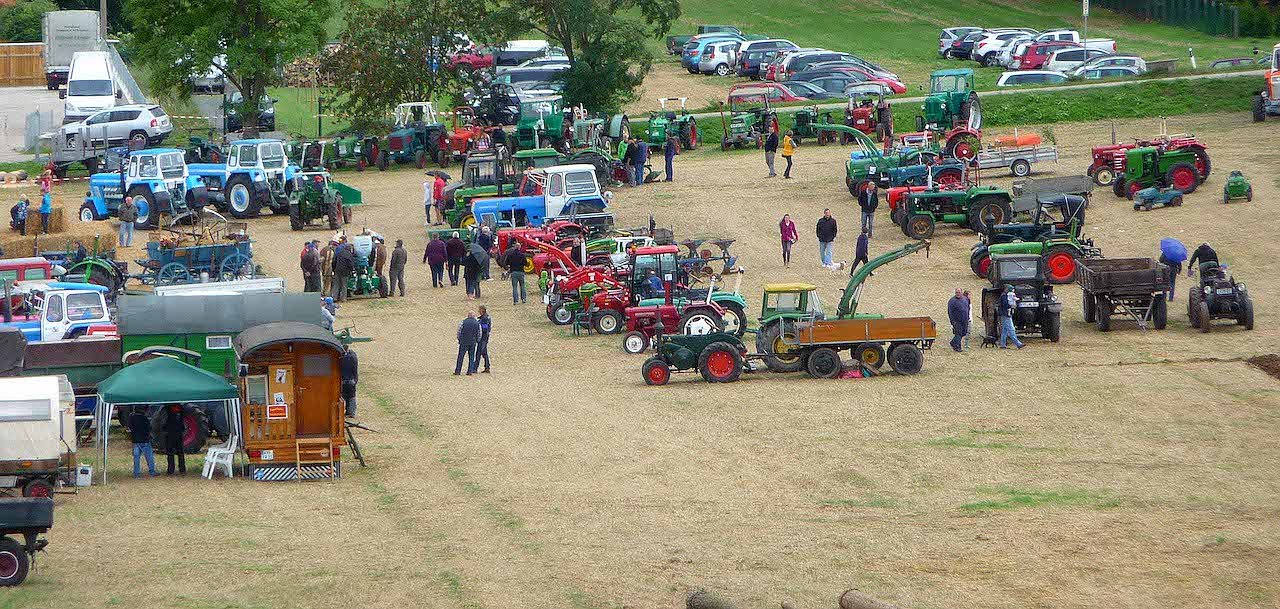 Weitere Höhepunkte sind Anhänger-Rückwärtsschieben, Schaupflügen und Baumstammziehen. Ein Eintrittsgeld wird nicht erhoben.