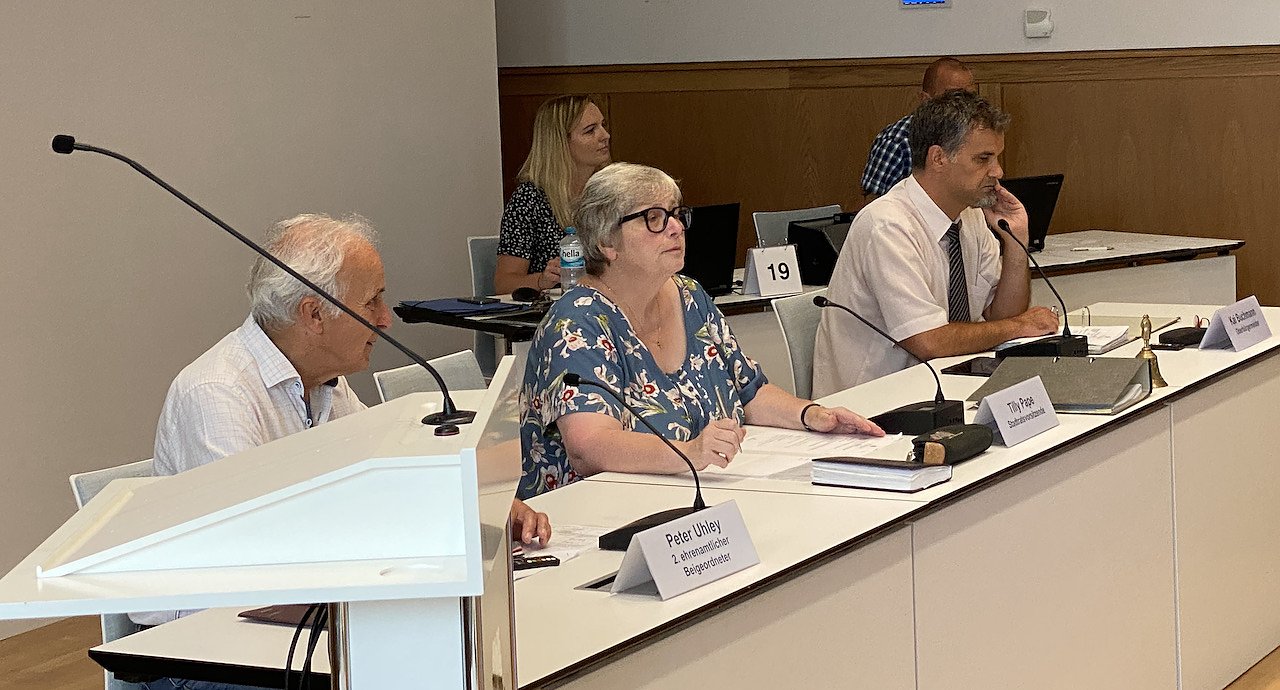 Langsam füllt sich der Saal, einige Plätze bleiben (wohl urlaubsbedingt) unbesetzt. Derzeit sind es 19 Räte, die sich im Saal befinden.