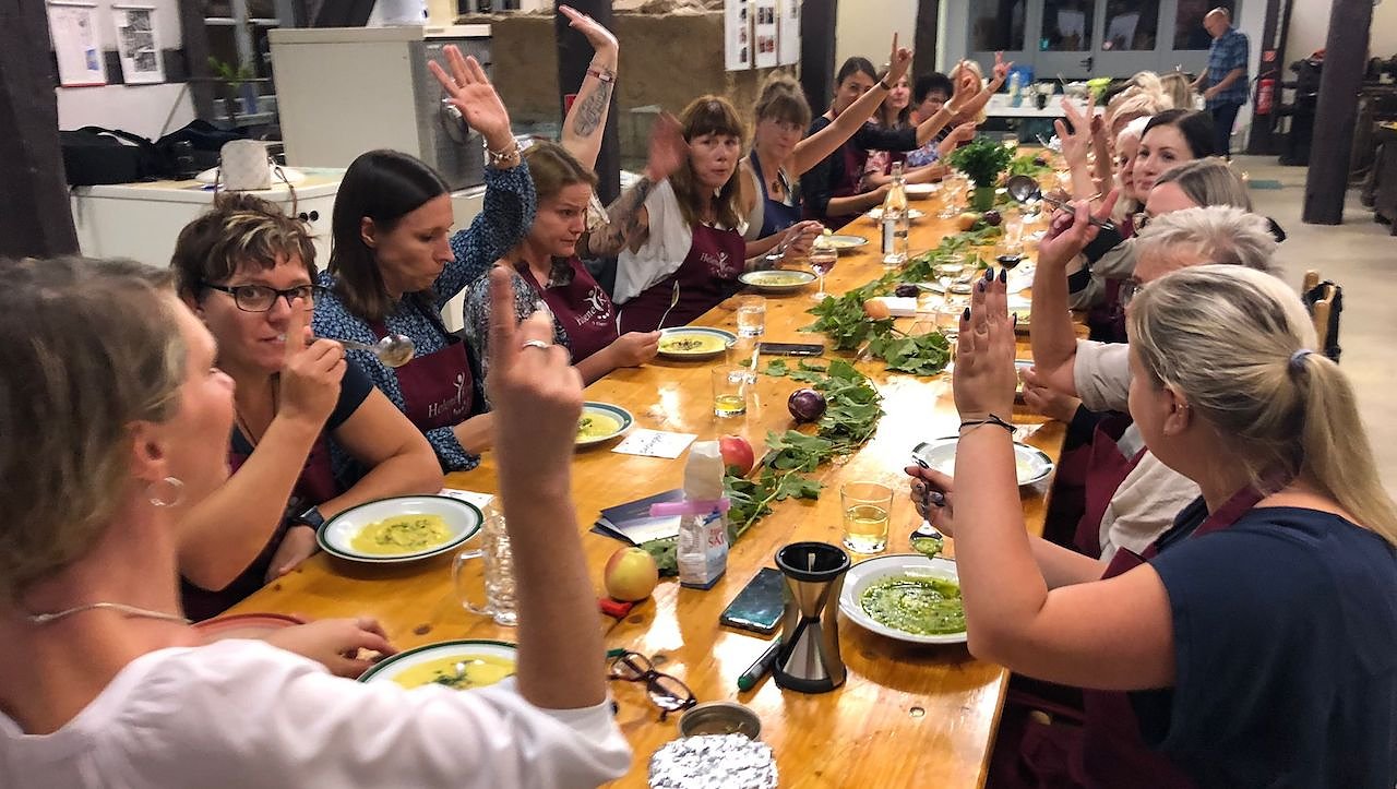 Die Stimmung war einzigartig. 20 Teilnehmerinnen zauberten gemeinsam diese viele Leckereien welche in dem tollem Ambiente, bei netten Begegnungen und interessanten Gesprächen genossen wurden.