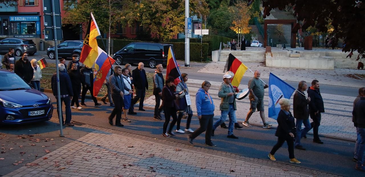 Jeder negative Beurteiler dieser montäglichen Spaziergänge in Nordhausen sollte fortan auf despektierliche Äußerungen bezüglich der Verwendung von Russland-Fahnen auf der Veranstaltung verzichten. Der Punkt , dass derartige Fahnen bei der letzten Veranstaltung in der ersten Reihe (unbedacht?) geschwenkt wurden, hat sehr vielen kritischen Spaziergängern/ Mitbürgern sauer aufgestoßen. Es wurde dementsprechend von vielen Personen zur Sprache gebracht und dementsprechend korrigiert.