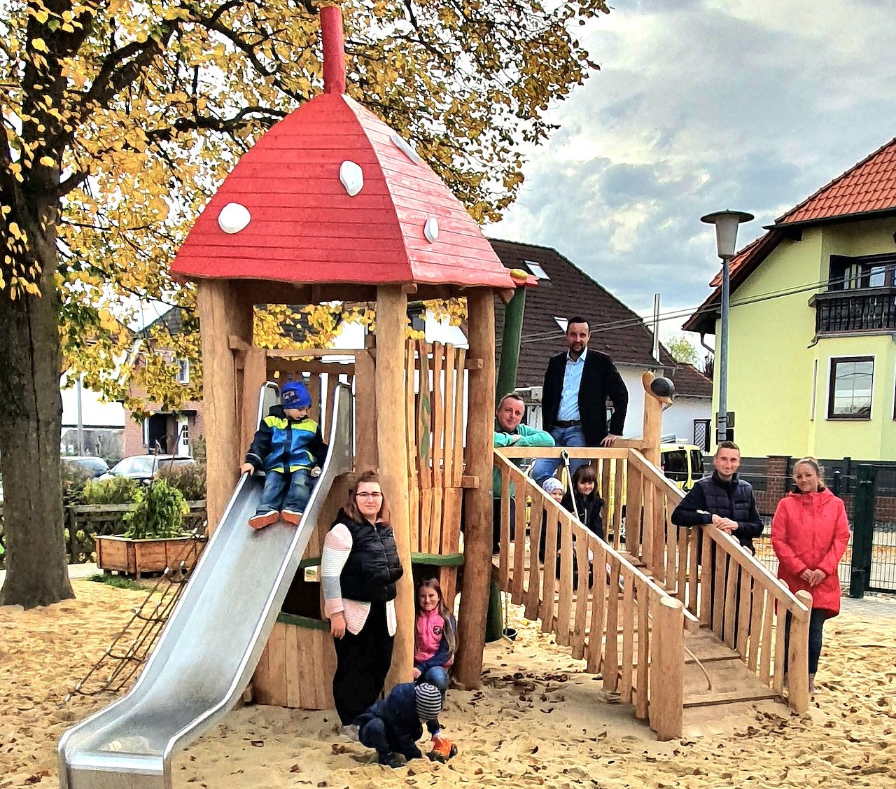 Die übrigen Gelder der nötigen Investition brachte der Förderverein als Eigenmittel auf, der erfolgreich über seine Mitglieder, Sponsoren und Unterstützern Spenden gesammelt hat. Bürgermeister Markus Volkmann (CDU) bedankte sich in diesem Zusammenhang beim Vorstand des Fördervereins um den Vorsitzenden Kevin Seifert für das Engagement in der zurückliegenden Zeit. Ohne dessen Einsatz und dem langen Atem wäre die Umsetzung so nicht möglich gewesen. Mit dem Spielgerät wächst die Attraktivität der Kindertageseinrichtung, so der Bürgermeister weiter in seinen Ausführungen.