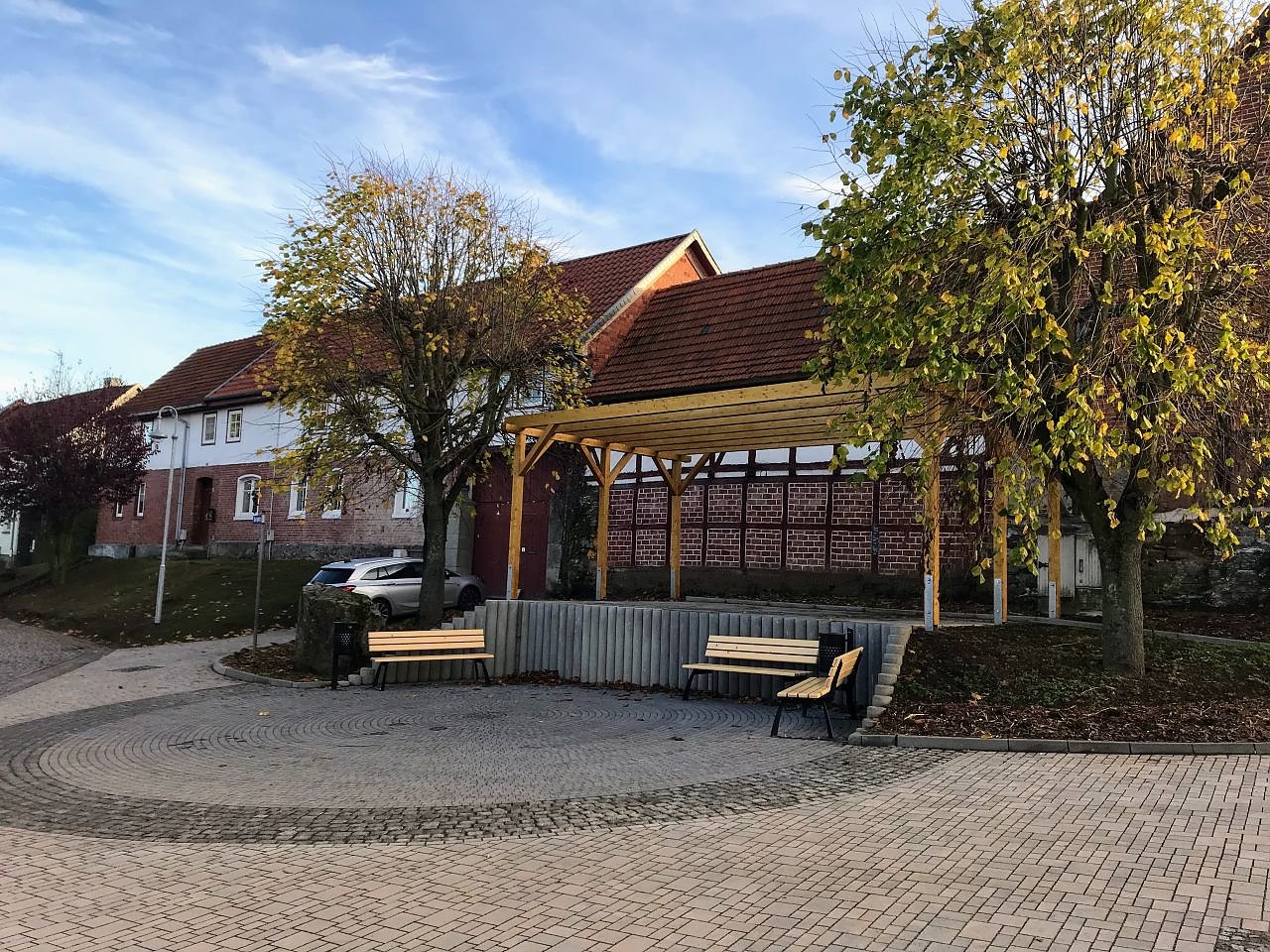 Die Beleuchtung wurde erneuert und im Hangbereich hinter der Linde wurde eine kleine Bühne gebaut. Neben neuem Pflaster geben Rabatten und Beete dem Dorfkern jetzt ein hübsches Gesicht. Die Bepflanzung ist noch geplant. Die Gemeinde Harztor hat im Rahmen der Dorferneuerung rund 400.000 Euro investiert.