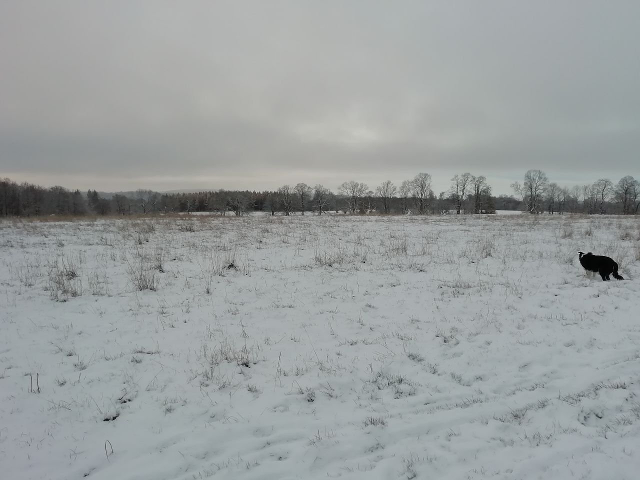 Minus 2 Grad, leichter Wind und gute 2 Zentimeter Schnee gab es heute morgen in Sophienhof (Foto: W. Jörgens)