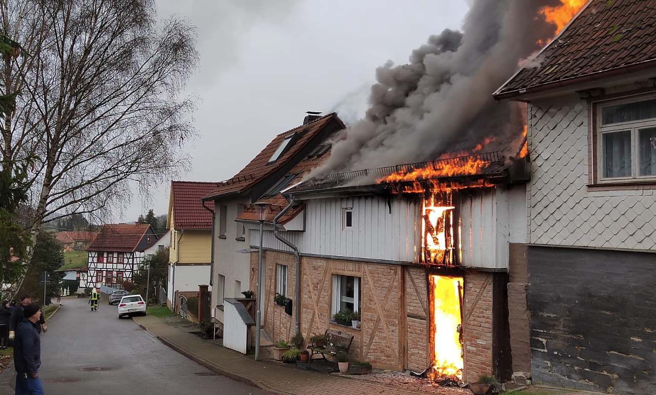 Die Freiwilligen Kameraden aus Steigerthal waren als erste am Einsatzort, inzwischen ist auch die Berufsfeuerwehr angerückt. Die Flammen haben sich schnell ausgebreitet, berichtet eine Anwohnerin. Die nnz wird weiter berichten.