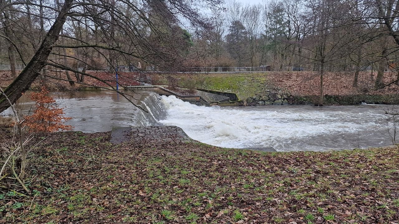 Die Zorge bei Nordhausen nähert sich dadurch kontinuierlich dem Meldebeginn von 180 Zentimeter, aktuell ist sie nur noch fünf Zentimeter entfernt. Ein weiterer Wert ist ebenfalls sehr interessant, der Durchfluss. Gegen 10 Uhr schossen knapp 24 Kubikmeter in der Sekunde durch das Flussbett. Hört sich viel an, ist aber noch "meilenweit" entfernt vom bisherigen Rekord. Der wurde Anfang März 1956 mit 95 Kubikmeter aufgestellt. Übrigens: zehn Jahre später gab es den Negativrekord mit 0,05 Kubikmeter in der Sekunde.
