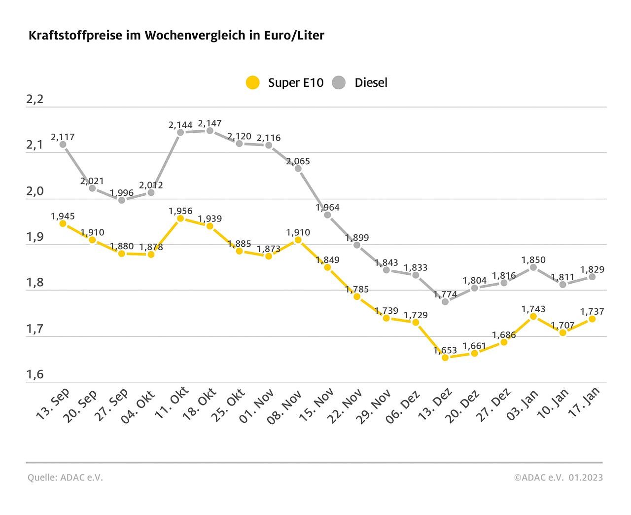 Autor: redEtwas geringer fällt der Anstieg bei Diesel aus: Ein Liter kostet aktuell 1,829 Euro – ein Plus von 1,8 Cent im Wochenvergleich.