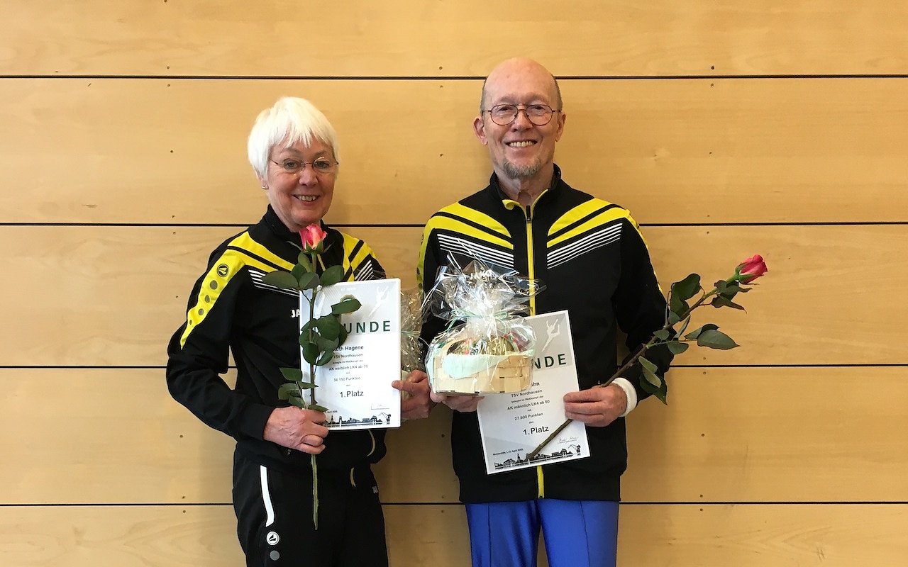 Ruth Hagene erturnte sich in der Altersklasse 70+ mit 34,15 Pkt. den 1. Platz. Wobei sie am Barren mit 12,4 Pkt. den höchsten Wert erzielte. Ihr Vereinskamerad Frank Lahn AK 80+ erkämpfte sich ebenfalls den 1. Platz.