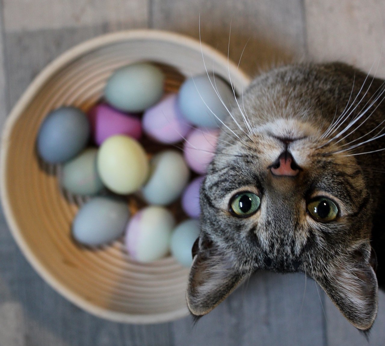 Frau Emmi Grünwald schickte uns ihr Osterfotos mit folgendem Text: "Mein Osterfoto zeigt meinen neugierigen Kater Snoopy, der bei allem dabei sein muss. So schummelte er sich auch auf das Bild mit unseren selbstgefärbten Ostereiern."
