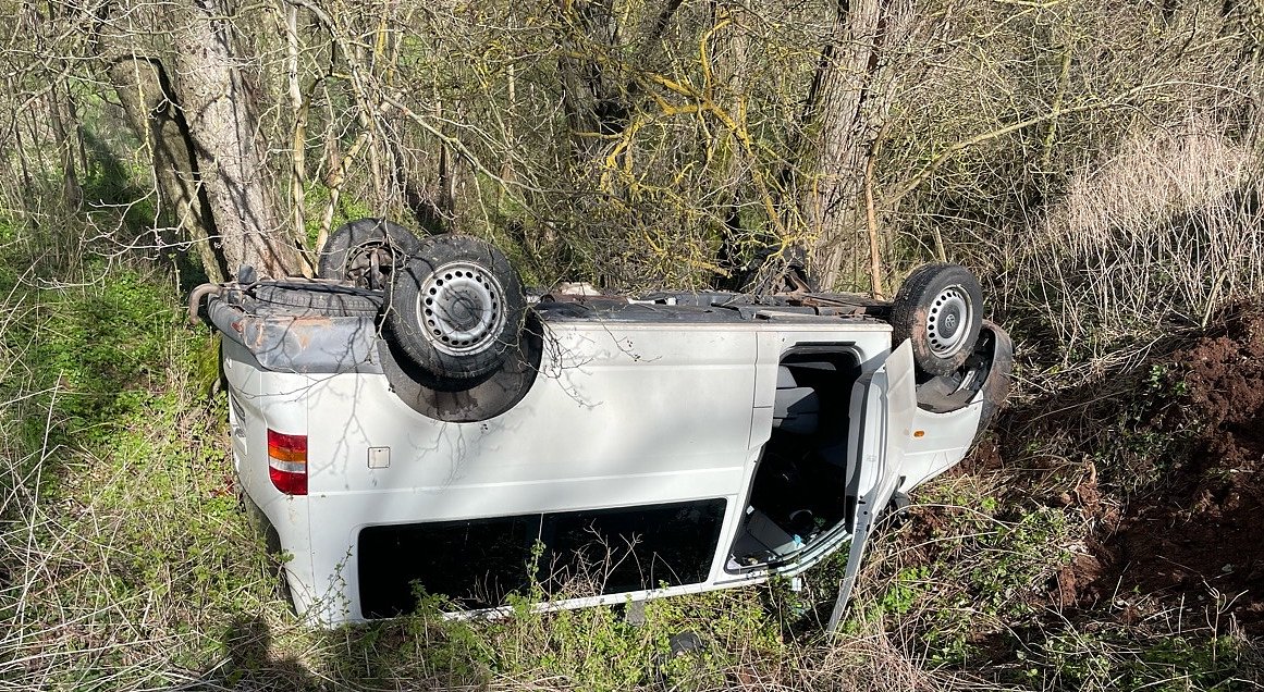 Die Fahrerin konnte sich selbstständig aus dem VW Bus retten und verständigte die Polizei. Diese sicherte den Unfallort und es kam zu einer kurzzeitigen Sperrung der Straße. Verletzt wurde bei dem Unfall glücklicherweise niemand. Der Transporter musste durch einen Abschleppdienst geborgen werden.
