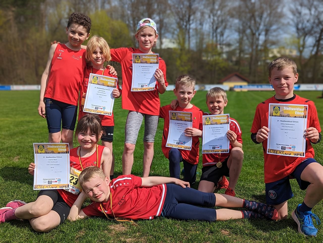 Erfolgreich im roten Trikot: Die Jungen und Mädchen der HSG Nordhausen zeigten, was in ihnen steckt beim Ellricher Stadtwaldlauf. (Foto: HSG Nordhausen)