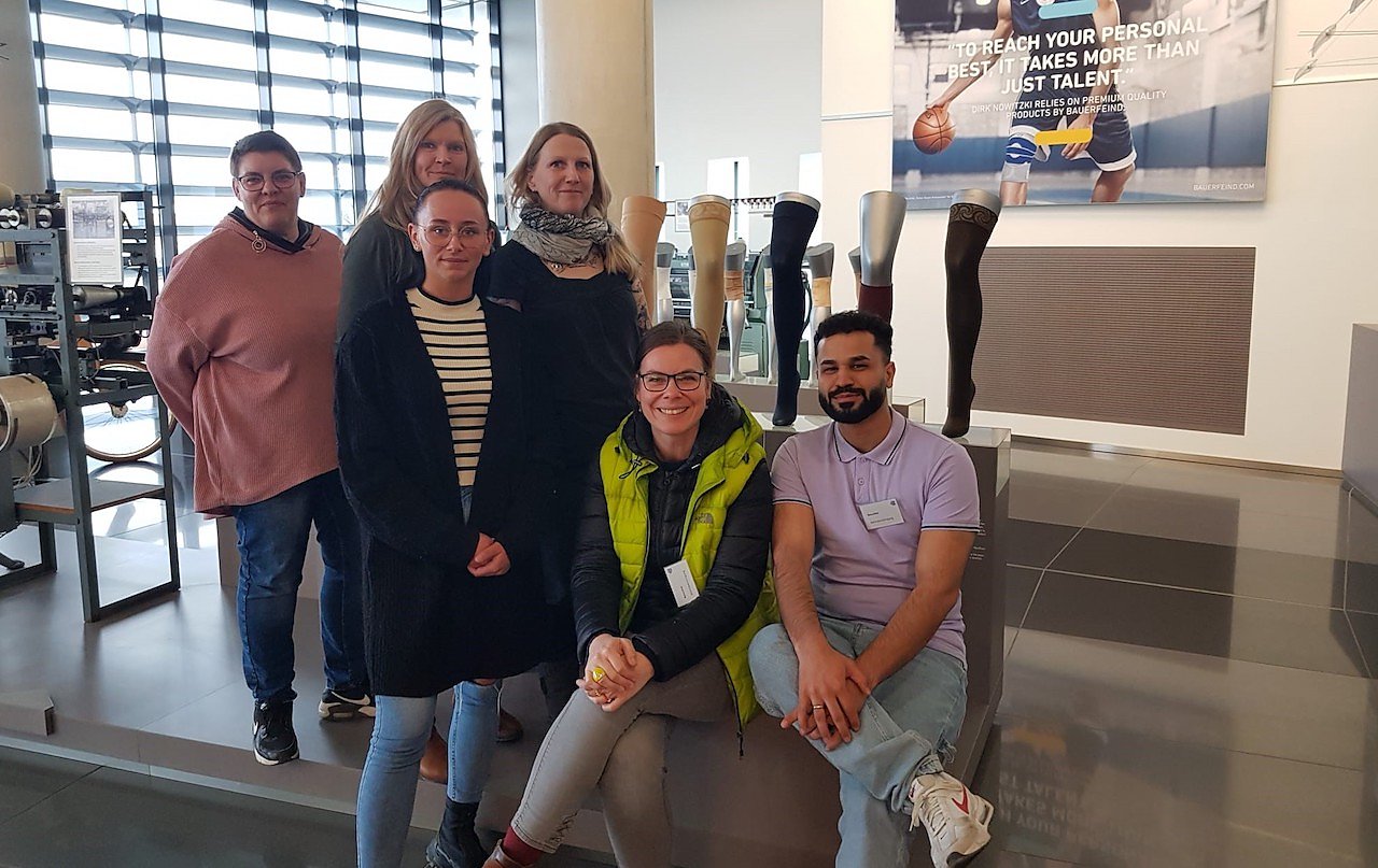 Den Höhepunkt stellte die Fachexkursion zur Firma Bauerfeind AG in Zeulenroda dar. Bei einer umfangreichen Werksführung bekamen die Azubis eindrucksvolle Einblicke hinter die Kulissen der Medizinprodukteindustrie - von der Idee bis zum fertigen Produkt. Besonders das Thema der Kompressionstherapie war dabei für die angehenden Pflegefachkräfte von großer Bedeutung: Welche Techniken der Vermessungen sind sinnvoll? Warum wird zwischen Flachstrick und Rundstrick unterschieden? Wann braucht der Patient Kniestrümpfe, wann eine Strumpfhose? Welche Besonderheiten liegen während einer Schwangerschaft vor und welche ist die beste Technik zur Anlage von Kompressionsmaterial? Die Experten der Bauerfeind Bildungs-Akademie gingen mit den IWK-Schülerinnen und Schülern in den fachlichen Austausch, leiteten an und beantworteten bereitwillig alle Fragen, denn die passende Auswahl des Hilfsmittels ist ebenso wichtig wie die korrekte Anwendung und Beratung.
