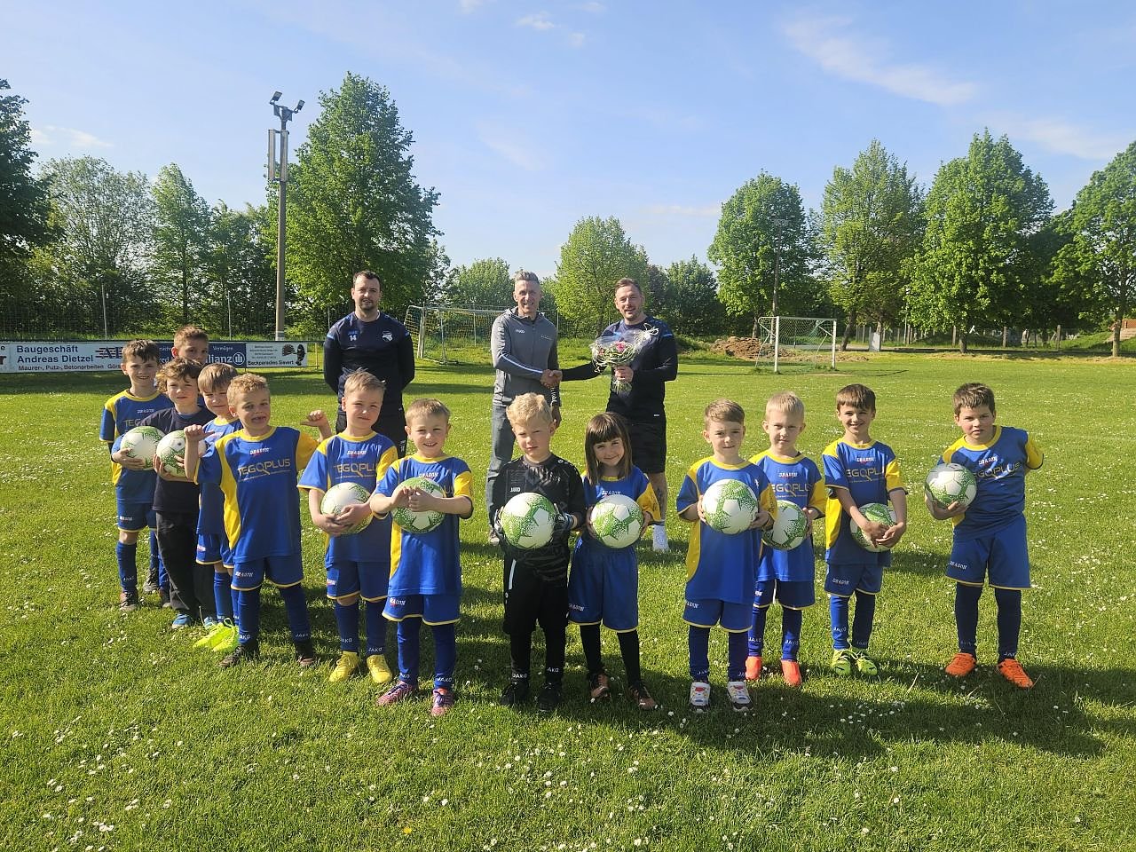Freude über neue Trainingsbälle bei den F-Junioren der Spielvereinigung Auleben/Görsbach (Foto: Franziska Bernsdorf, Stadtwerke)