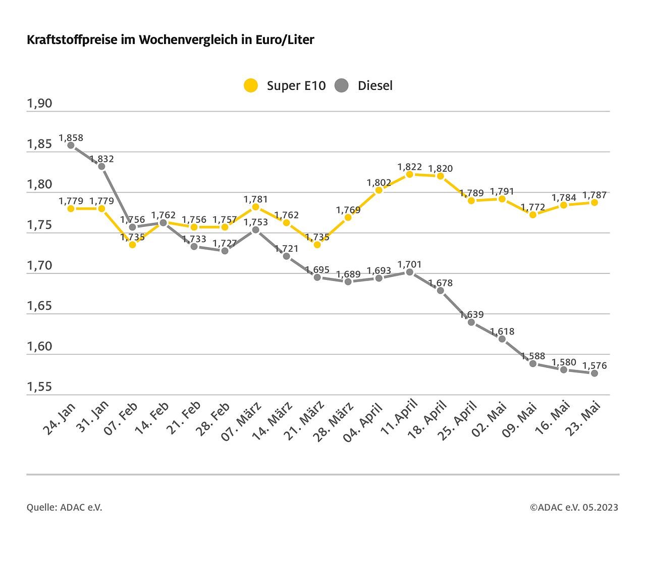 Dafür müssen Autofahrer aktuell 1,576 Euro je Liter bezahlen, 0,4 Cent weniger als vor Wochenfrist. Damit ist Diesel die sechste Woche in Folge günstiger als in der jeweiligen Vorwoche.