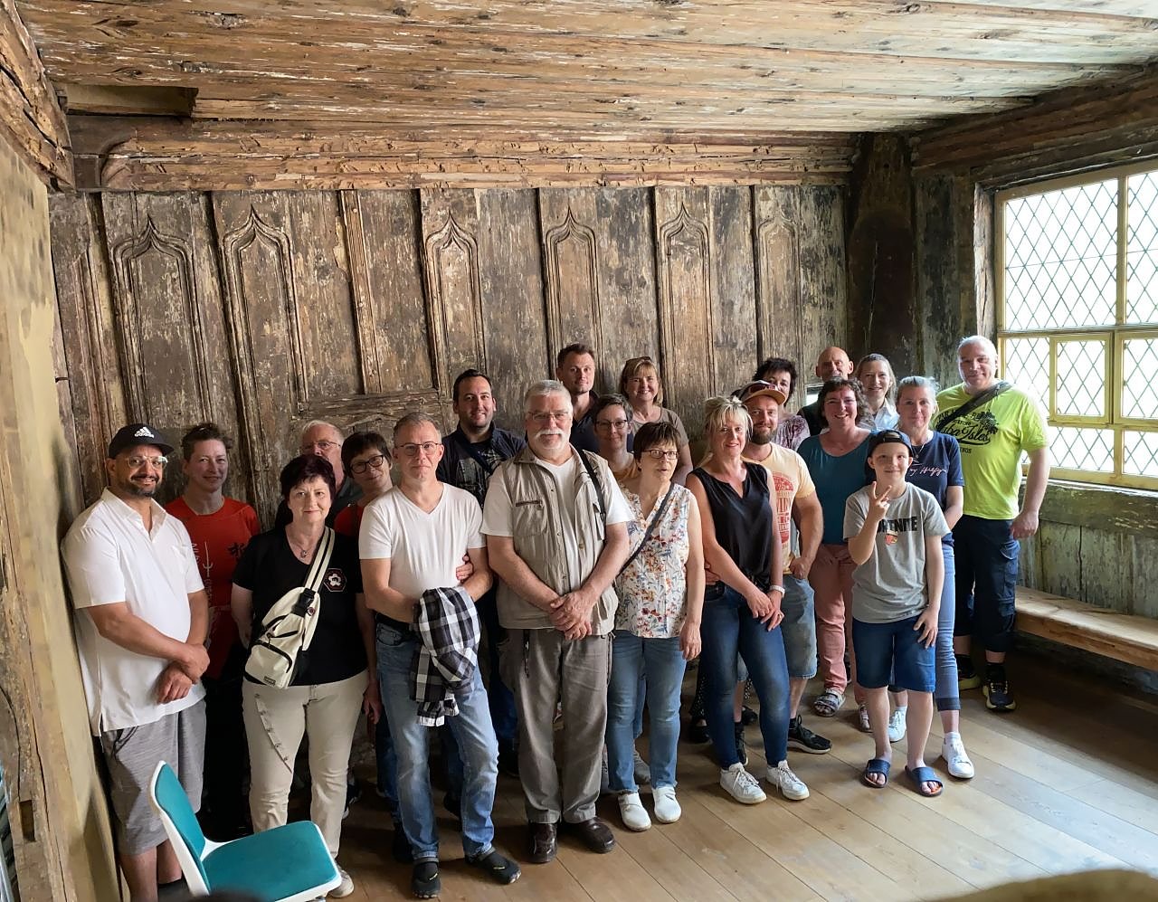 Als kleiner Bonus ging es im Anschluss noch, quasi nebenan, in die Bohlenstube der Domstraße 12. Diese wurde im 16. Jahrhundert recht aufwendig gebaut und nach ihrer Wiederentdeckung restauriert. Das Besondere an der Stube ist, dass sie aus unbekannten Gründen einen sehr schiefen Fußboden hat. Beim Gehen in dem Raum gerät man deshalb selbst nüchtern schon mal ins Schwanken.