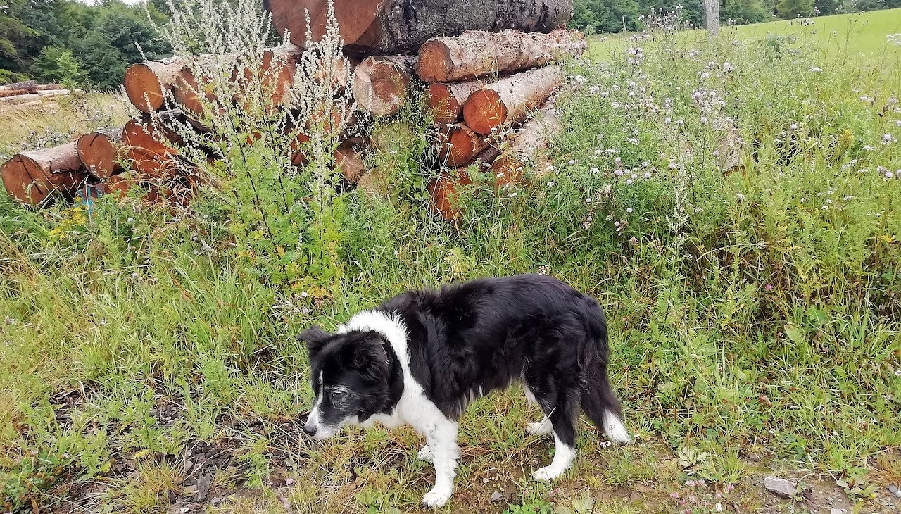 Bei 13 Grad, kühlem Wind und regnerischem Wetter in Sophienhof fragt sich auch unser Wetterhund, was der Herbst im Juli zu suchen hat. (Foto: W.Jörgens)