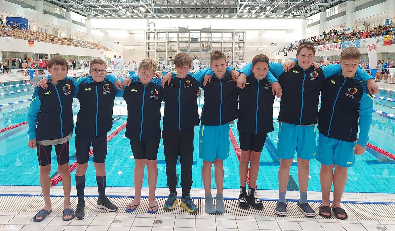 Die 6x25m Koordinationsstaffel mit Brust-Arme und Kraul-Beinen oder Rückenarm-Gleichschlag und Brust-Beinen gelingen sogar 12 Sekunden schneller. Bestzeit auch über 4x25m Brust. Das Freitagtraining bei Frau Berndt zahlt sich aus. Mit 127 Bahnen beim Mannschaftsdauerschwimmen und einer Zeit von 1:56,87min über 6x25m Freistil in Brust- und Rückenlage erschwimmen sich Liam Ackermann, Paul-Theodor Fischer, Raphael Konschak, Paul-Emil Höpfner, Tom Meinberg, John Henry Schaefer, Anuk Schanz und Malte Ulle am Ende einen hervorragender 11. Platz. Dank der finanziellen Unterstützung durch den Landrat, den Schulförderverein, der Fidendes GmbH und Ahr-Haustechnik konnten die Teilnahme, die Wettkampfvoraussetzungen und ein abwechslungsreiches Rahmenprogramm abgesichert werden!, freuen sich die Sportler.